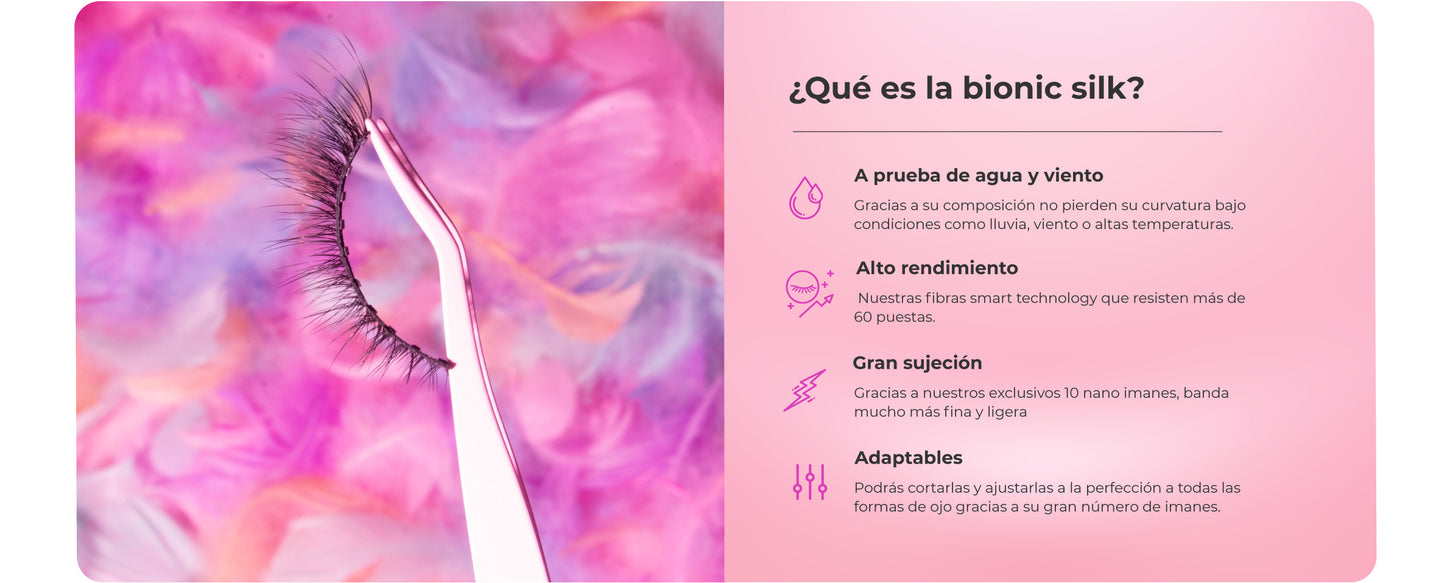 TECHY combinan un precioso modelo Cat eye de pestañas magnéticas junto a la última tecnología en cosmética. Fibra bionic silk totalmente vegana y 10 nano imanes de máxima adherencia ¿Qué más se puede pedir? Ah, puedes reutilizarlas +60 veces.