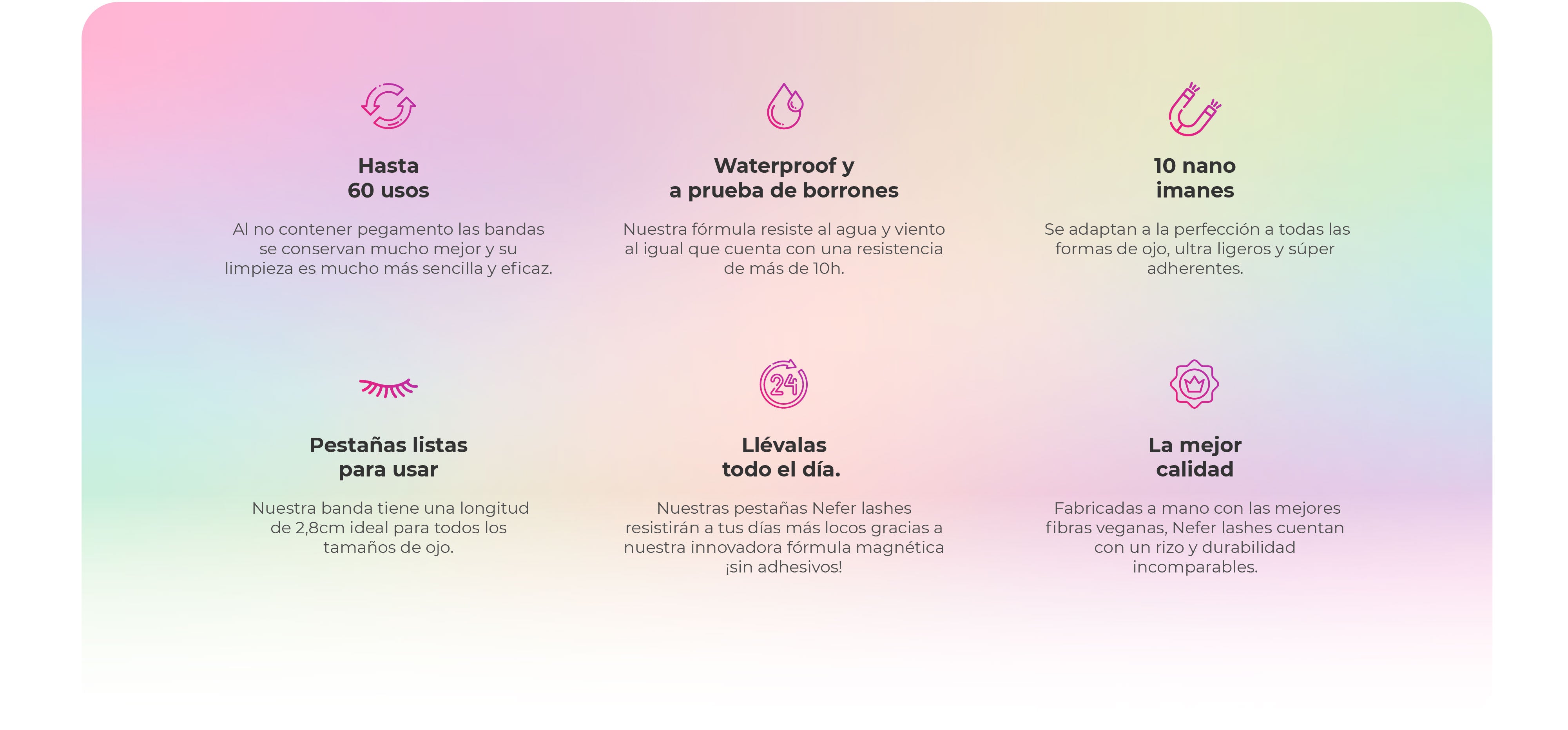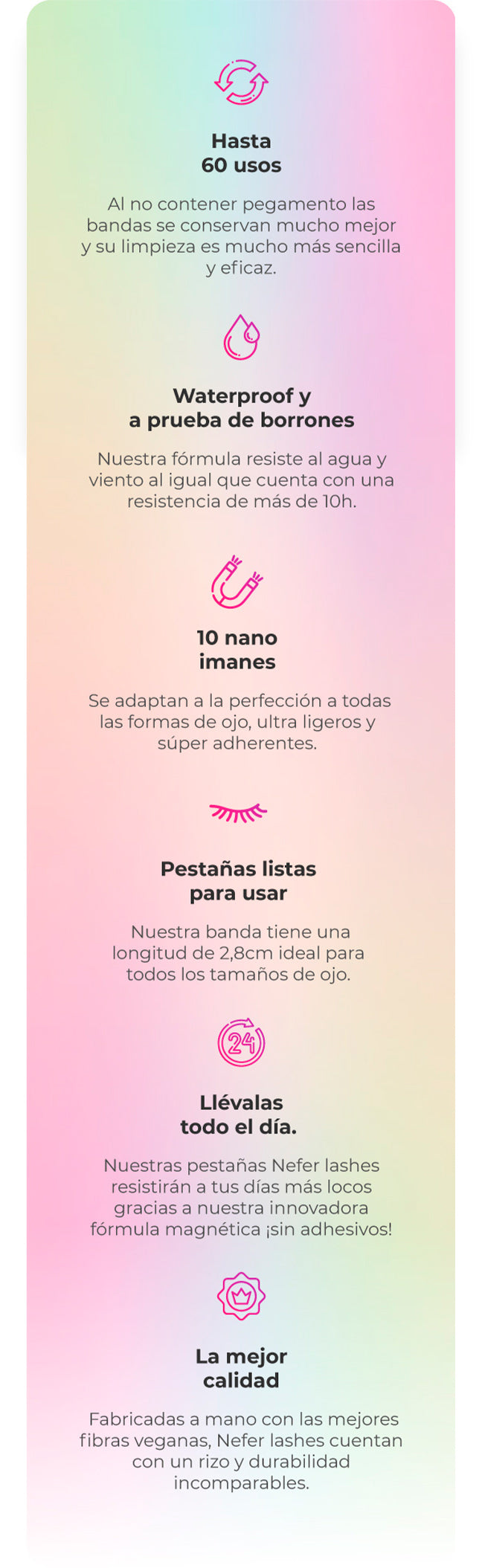 Aplícate nuestras pestañas magnéticas en cuestión de segundos. ¡Se imantan solas al eyeliner en segundos! Ya que tienen la aplicación más sencilla del mercado, son ideales para principiantes.